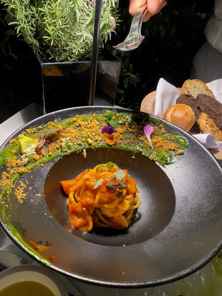 Downstairs, the restaurant brings Mediterranean simplicity to the table — grilled fish, ripe tomatoes, olive oil so golden it tastes like sunlight. Everything is seasonal, unhurried, and plated with poetic ease.