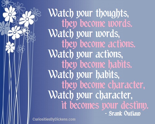‘Watch your thoughts, they become words.Watch your words, they become actions. Watch your actions, they become habits. Watch your habits, they become your character. Watch your character, it becomes your destiny.’